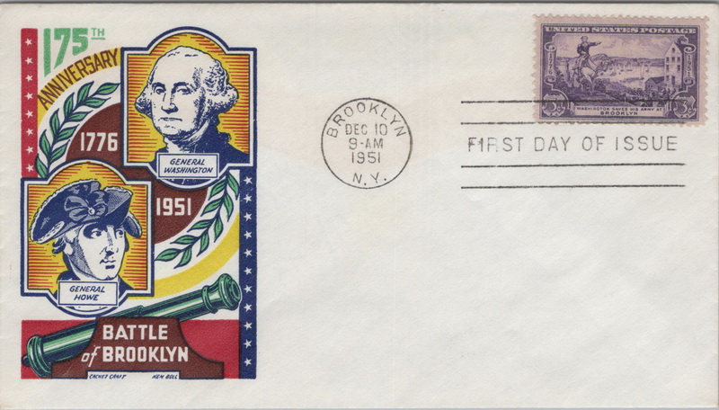 | | 1950s | | 1058 | 1003 | 12/10/1951 | Battle of Brooklyn, NY; Cachet Craft; multicolored | $12.00 |