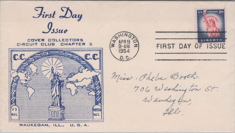 | | 1950s | | 1069 | 1041 | 4/9/1954 | Statue of Liberty; Cover Collectors Circuit Club, Chapter 16; MNL; blue; MC IA | $12.00 |