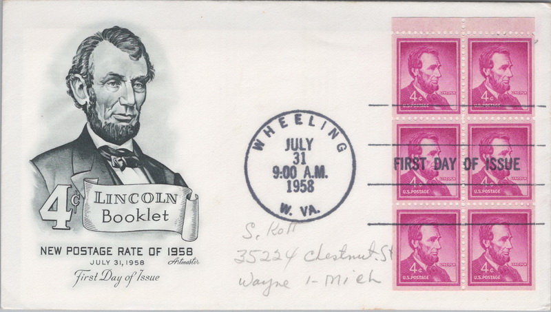 | | 1950s | | 1077 | 1036a | 7/31/1958 | Abraham Lincoln, BP6; Artmaster; M6; Booklet Pane of 6; HC PA | $10.00 |