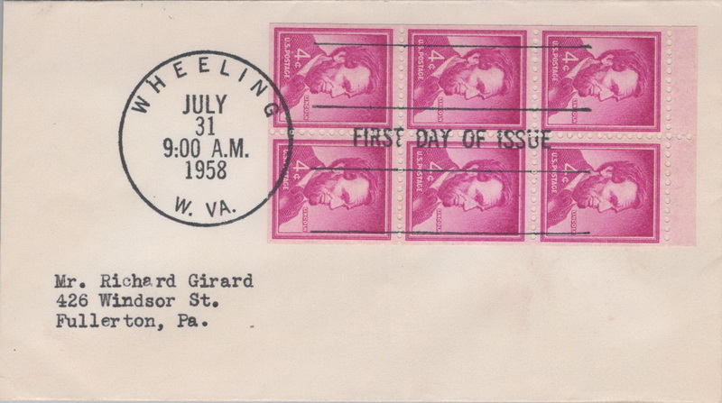 | | 1950s | | 1078 | 1036a | 7/31/1958 | Abraham Lincoln, BP6; Bert, Adam K.; Small envelope with back return address; Booklet Pane of 6; HC TA | $8.00 |