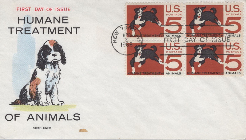 | | 1960s | | 1102 | 1307 | 4/9/1966 | Humane Treatment of Animals; Fluegel; multicolored; B4 | $12.00 |