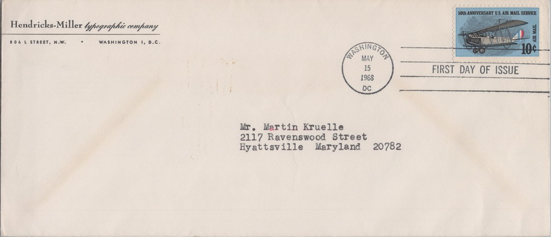 | | 1960s | | 1105 | C074 | 5/15/1968 | 50th Anniversary U.S. Air Mail Service; Hendricks-Miller lythographic company, Washington DC | $12.00 |