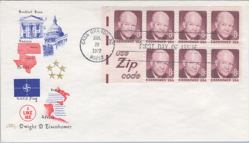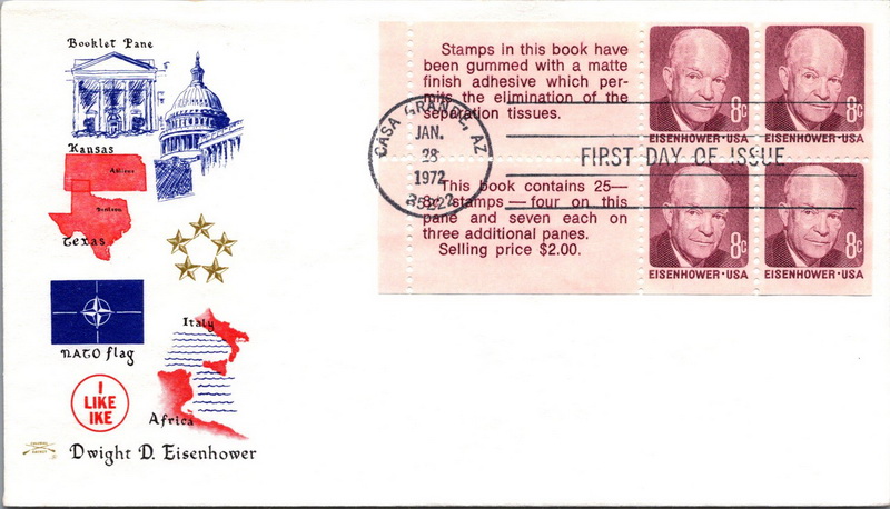 | | 1970s | | 1114 | 1395c | 1/28/1972 | Dwight D. Eisenhower; Colonial; Set of 2; #1395C & #1395D Booklet Panes | $15.00 |