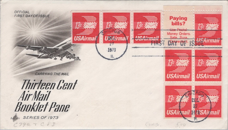 | | 1970s | | 1123 | C079b | 3/4/1974 | Airmail Letter & Wings, Pane of 5 + label; Artcraft; Combo Strip of 3 C73 issued same date | $10.00 |