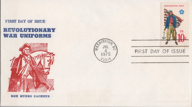 | | 1970s | | 1127 | 1566 | 7/4/1975 | Bicentennial Military Services, Continental Navy; Myers, Ron | $8.00 |