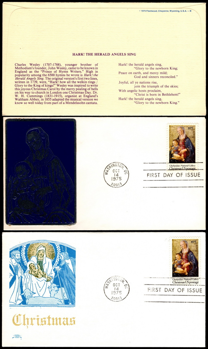 | | 1970s | | 1129 | 1579 | 10/14/1975 | Christmas, Traditional; Christmas (traditional), 5 diff cachet makers (e.g., Colonial Cachets, FLT) | $15.00 |