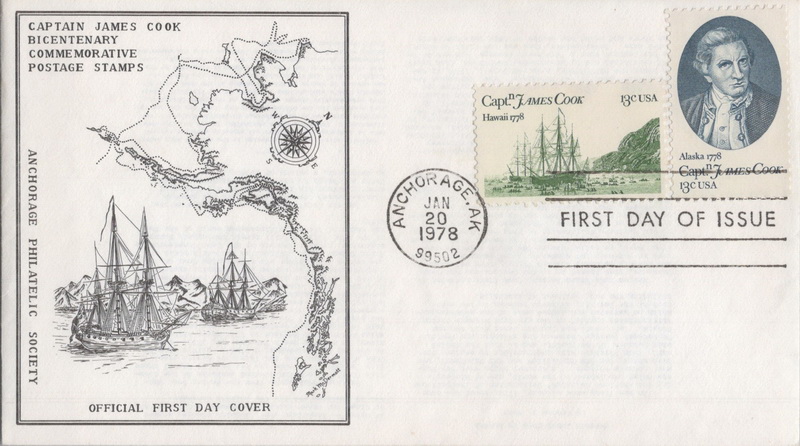 | | 1970s | | 1147 | 1733a | 1/20/1978 | Captain James Cook, Pair; Anchorage Philatelic Society; AK | $12.00 |