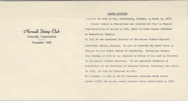 | | 1970s | | 1151 | 1774 | 3/4/1979 | Albert Einstein; Norwalk Stamp Club | $12.00 |