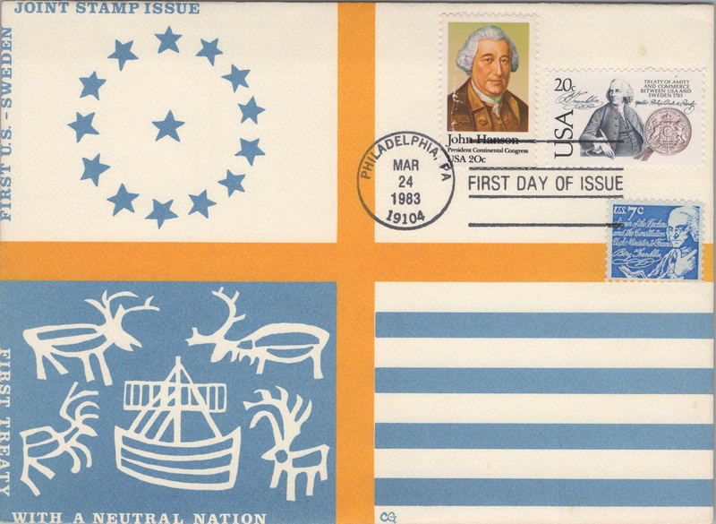 | | 1980s | | 1162 | 2036 | 3/24/1983 | U.S. - Sweden; Gordon, Carol; Combo #1941 John Hanson and #1393d Ben Franklin | $40.00 |