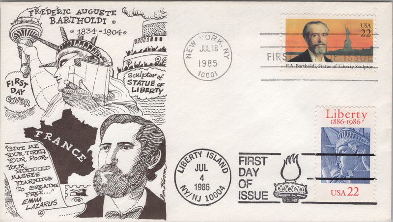 | | 1980s | | 1172 | 2147 | 7/18/1985 | Frederic Auguste Bartholdi; OB (Old Bridge); Dual FDOI #2224 Statue of Liberty | $20.00 |