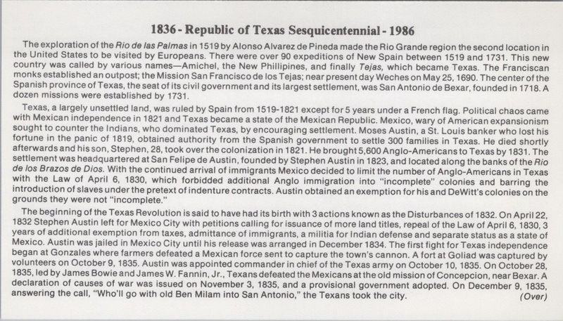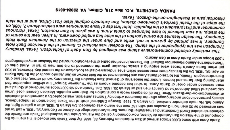 | | 1980s | | 1176 | 2204 | 3/2/1986 | Republic of Texas; Panda Cachets; Washington on The Brazos TX | $10.00 |