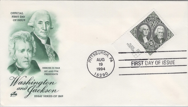 | | 1990s | | 1222 | 2592 | 8/19/1994 | Washington/Jackson; Artcraft; Plate Position Single | $15.00 |
