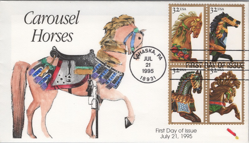 | | 1990s | | 1223 | 2979a | 7/21/1995 | Carousel Horses, block of 4; Dynamite Cover; HCD; 64 made | $20.00 |