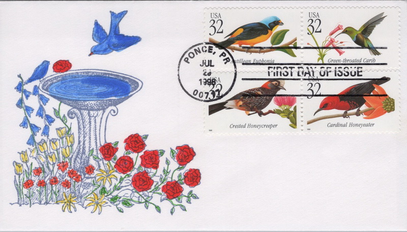 | | 1990s | | 1228 | 3225a | 7/29/1998 | Tropical Birds, block of 4; SK Cachets; HPD | $12.00 |