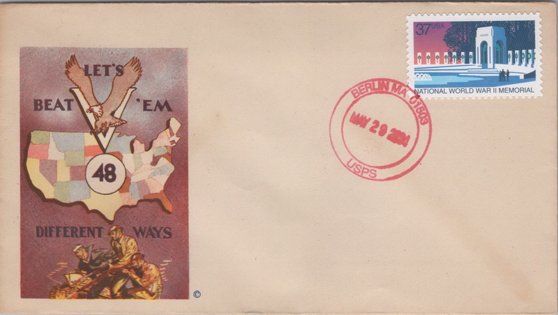 | | 2000s | | 1246 | 3862 | 5/29/2004 | National World War II Memorial; Minkus, Jacques; WWII Patriotic; UO Berlin MA; USPS CDS | $15.00 |