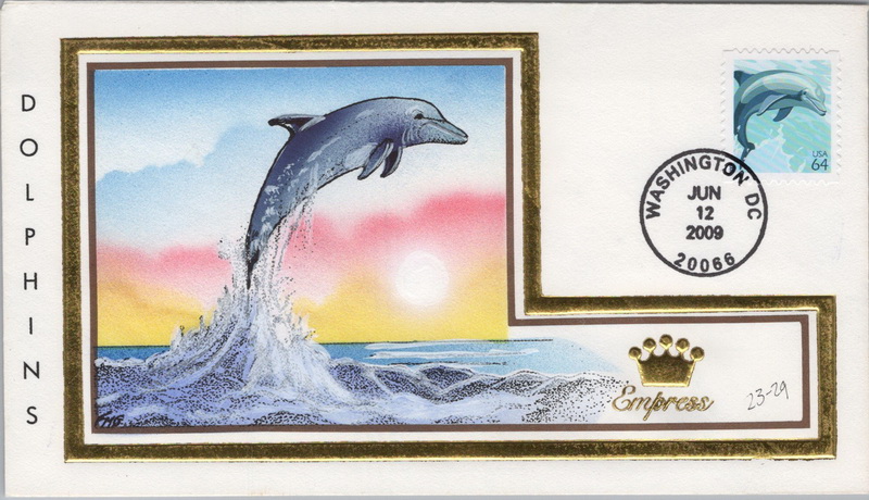 | | 2000s | | 1259 | 4388 | 6/12/2009 | Dolphin; Empress Cachets; Printed with gold leaf border around design; 29 made | $20.00 |