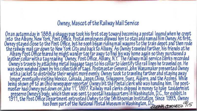 | | 2010s | | 1264 | 4547 | 7/27/2011 | Owney the Postal Dog; Cornejo, Elena; 15 made | $25.00 |