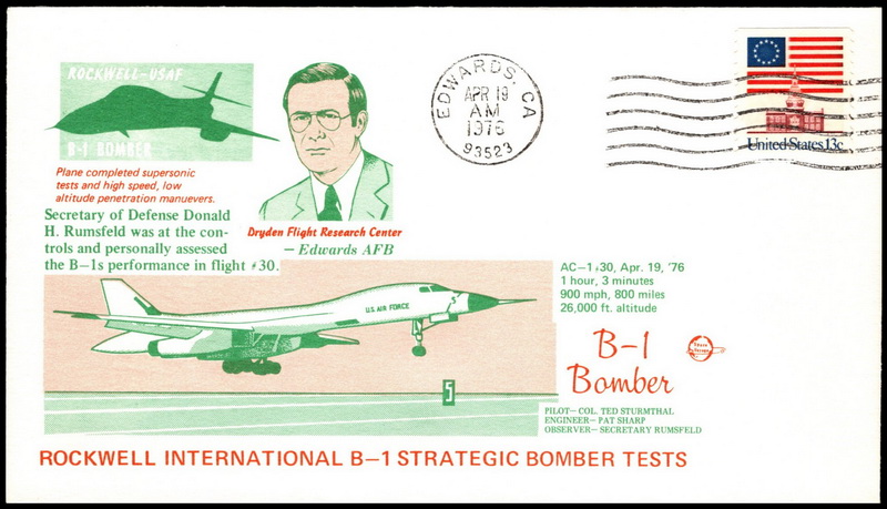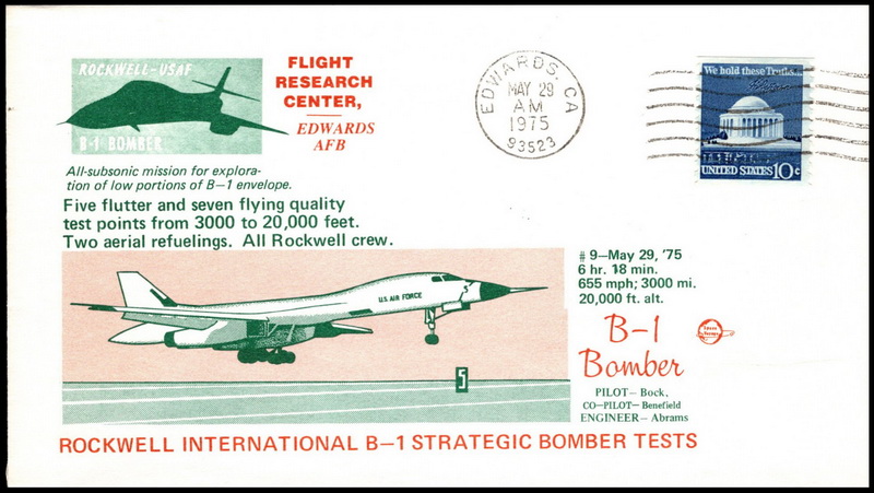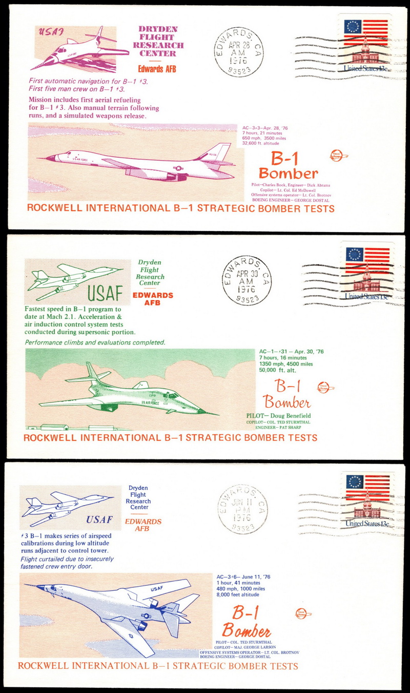 | | Event Covers | | 1297 | Event | | Testing of the B-1 Bomber, set/5, 1975-1976 | $20.00 |