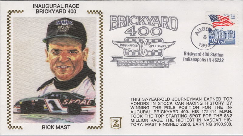 | | Event Covers | | 1306 | Event | 8/6/1994 | Z Silk Cachet; Brickyard 400 Inaugural Race; Rick Mast; Indianapolis IN Brickyard 400 Station; PHC | $12.00 |