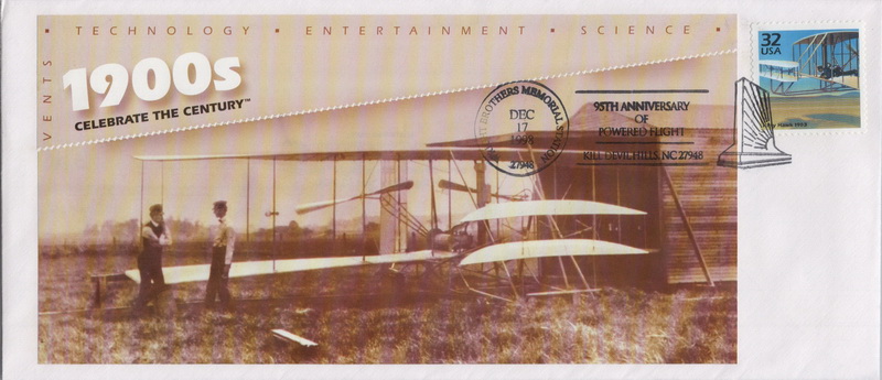 | | Event Covers | | 1313 | Event | 12/17/1998 | Wright Brothers 95th Anniversary of Flight; CTC sheet selvage as cachet; Kill Devil Hills NC Wright Brothers Memorial Station | $12.00 |