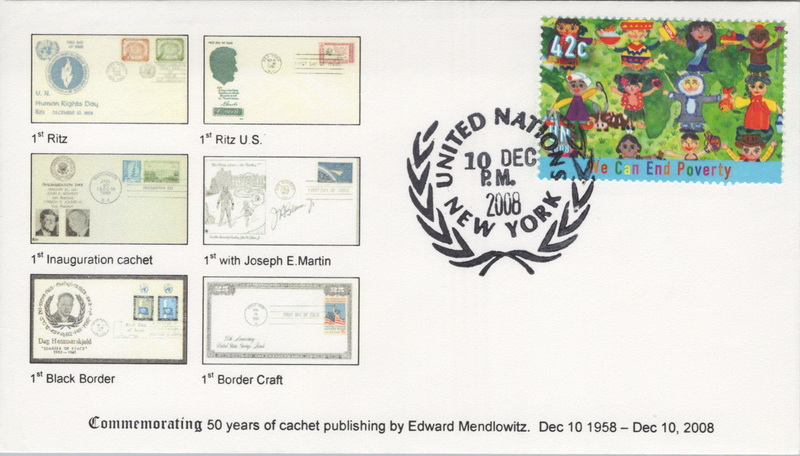 | | Event Covers | | 1318 | Event | 12/10/2008 | Edward Mendlowitz, 50th Year of Cachetmaking; Set of 2 - U.S. and U.N. | $15.00 |