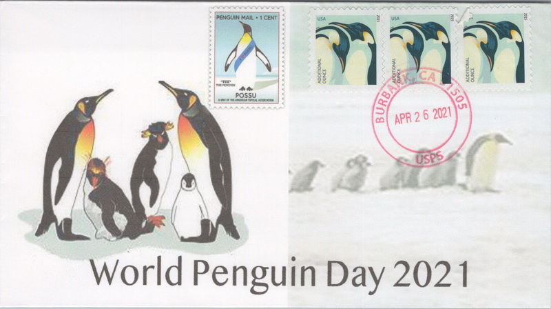 | | Event Covers | | 1322 | Event | 4/26/2021 | Shirley Uling; World Penguin Day 2021; Burbank CA; 7 made | $8.00 |