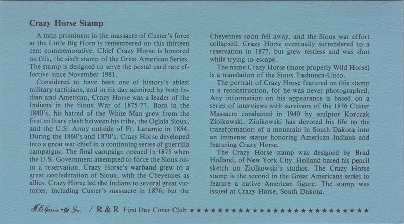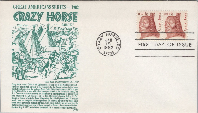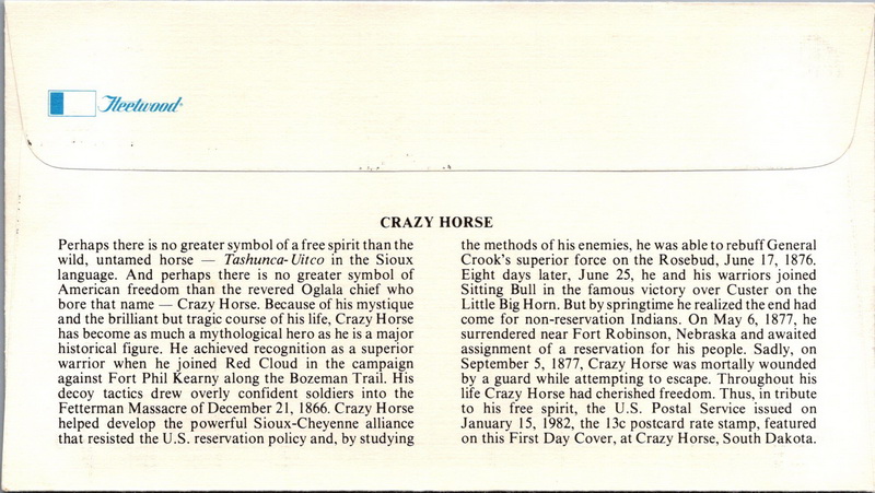 | | Sets & Collections | | 1339 | 1855 | 1/15/1982 | Crazy Horse; Collection of 45 FDCs | $100.00 |