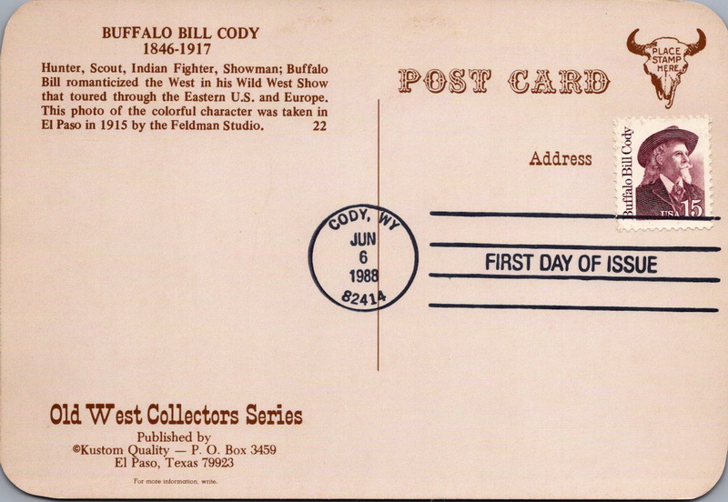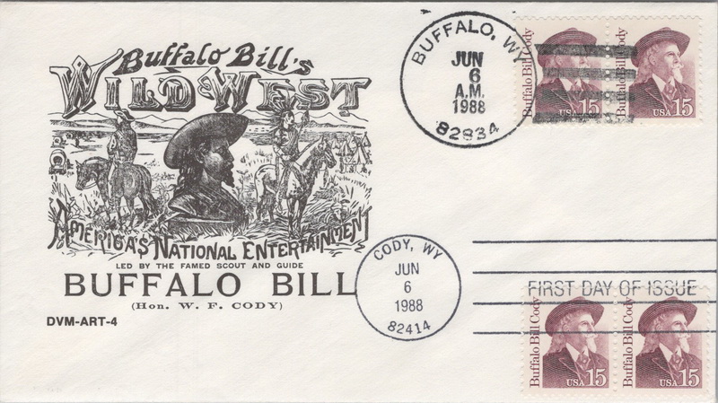 | | Sets & Collections | | 1341 | 2177 | 6/6/1988 | Buffalo Bill Cody; Collection of 24 FDCs and Post Card FDCs | $80.00 |