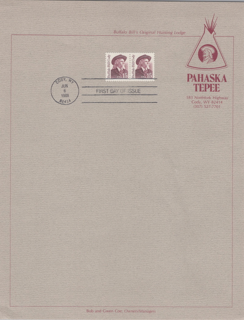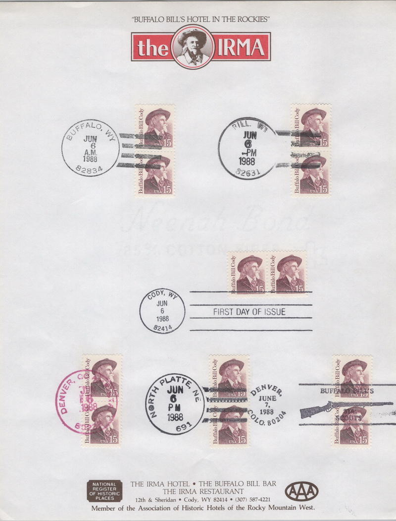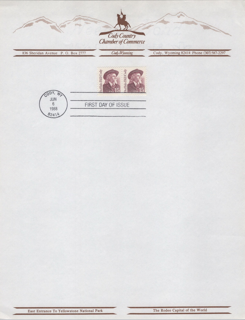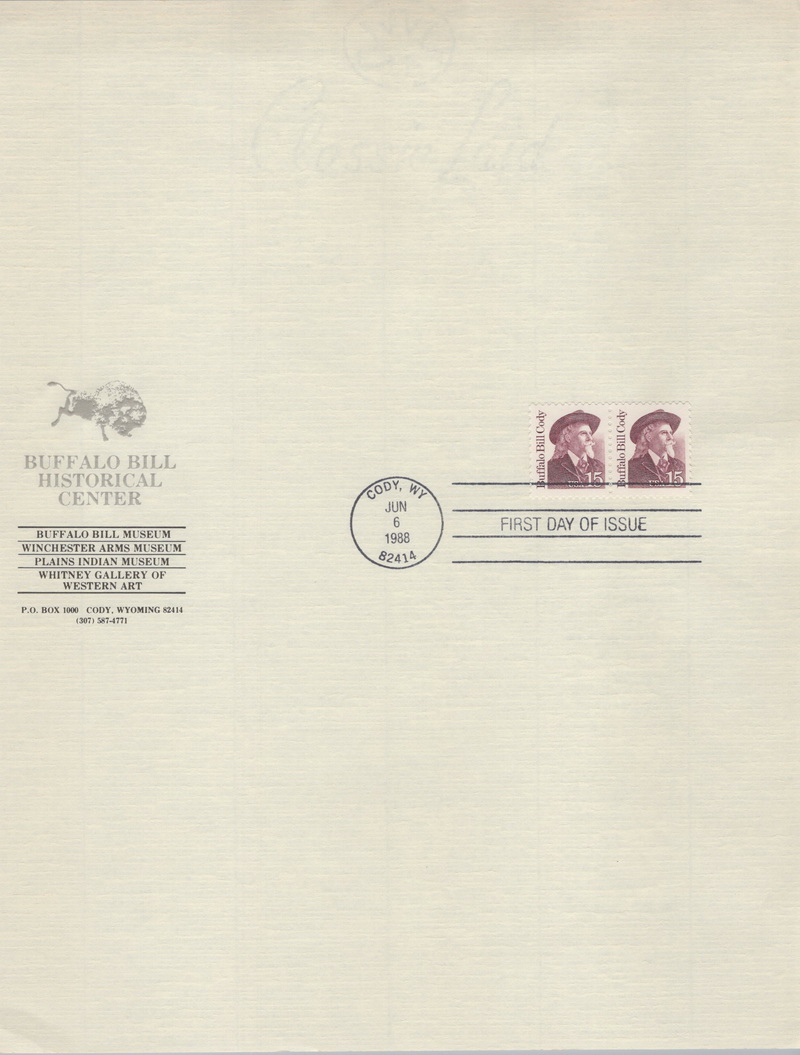 | | Sets & Collections | | 1342 | 2177 | 6/6/1988 | Buffalo Bill Cody; Collection of (4) on Business Stationery with multiple FDOI/UO cancels | $25.00 |