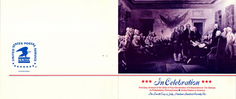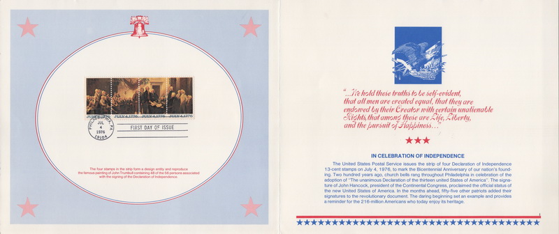 | | Oversized Items | | 1380 | 1694a | 7/4/1976 | Declaration of Independence, Strip of 4; United States Post Office Department; Ceremony Program | $15.00 |