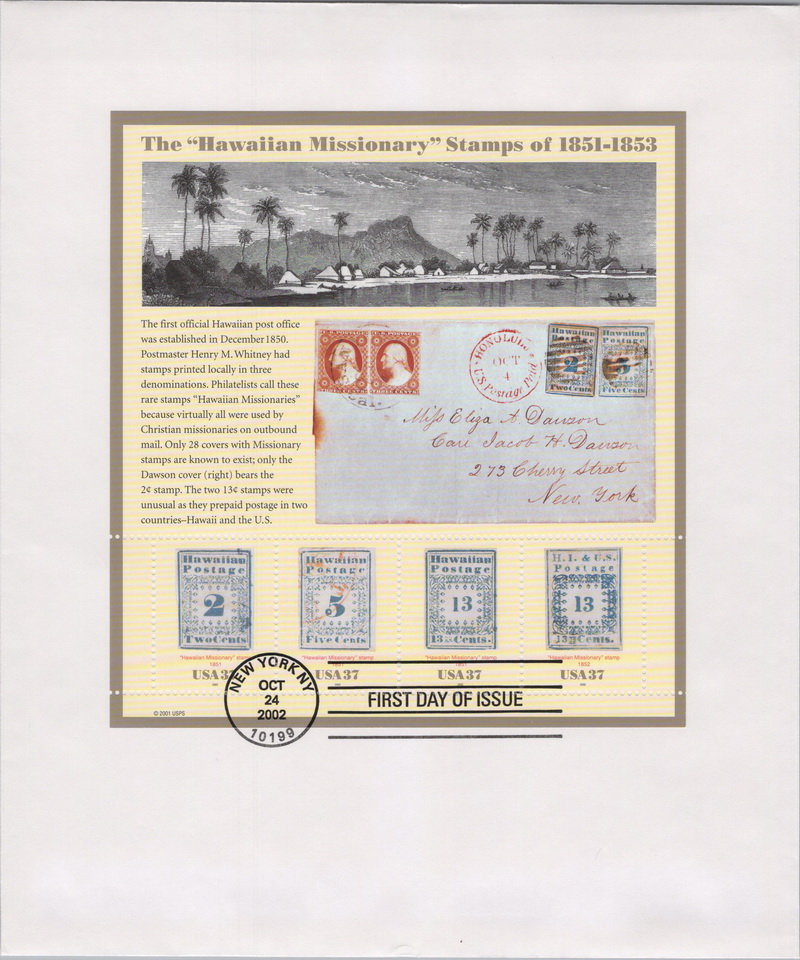 | | Oversized Items | | 1387 | 3694 | 10/24/2002 | Hawaiian Missionary Stamps, pane of 4; Uncacheted | $12.00 |
