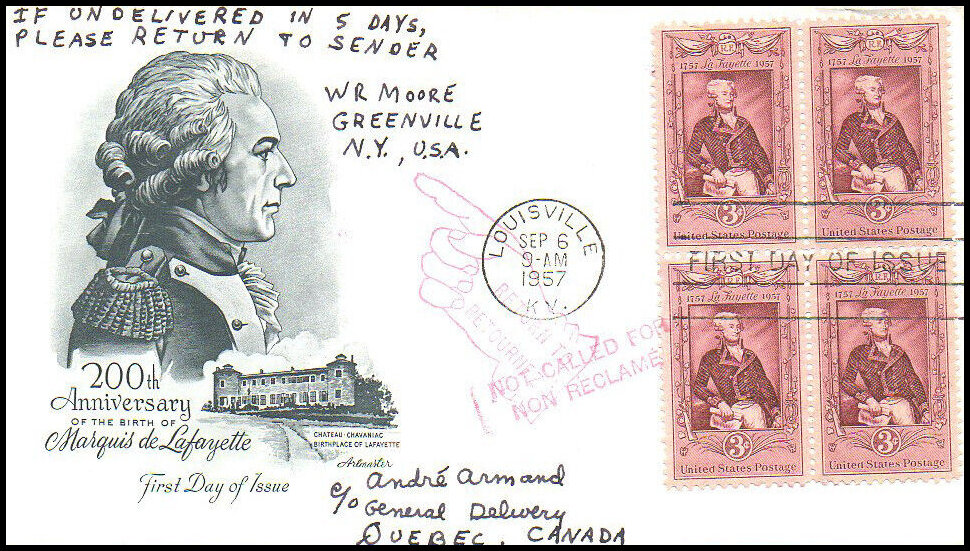 | 9.. | 1097 | M004 |  | C#: MTD: PD: QTY: DSC: | 1 Original {NC}; Foreign Destination: Francea; with receiving cancel on front and back |