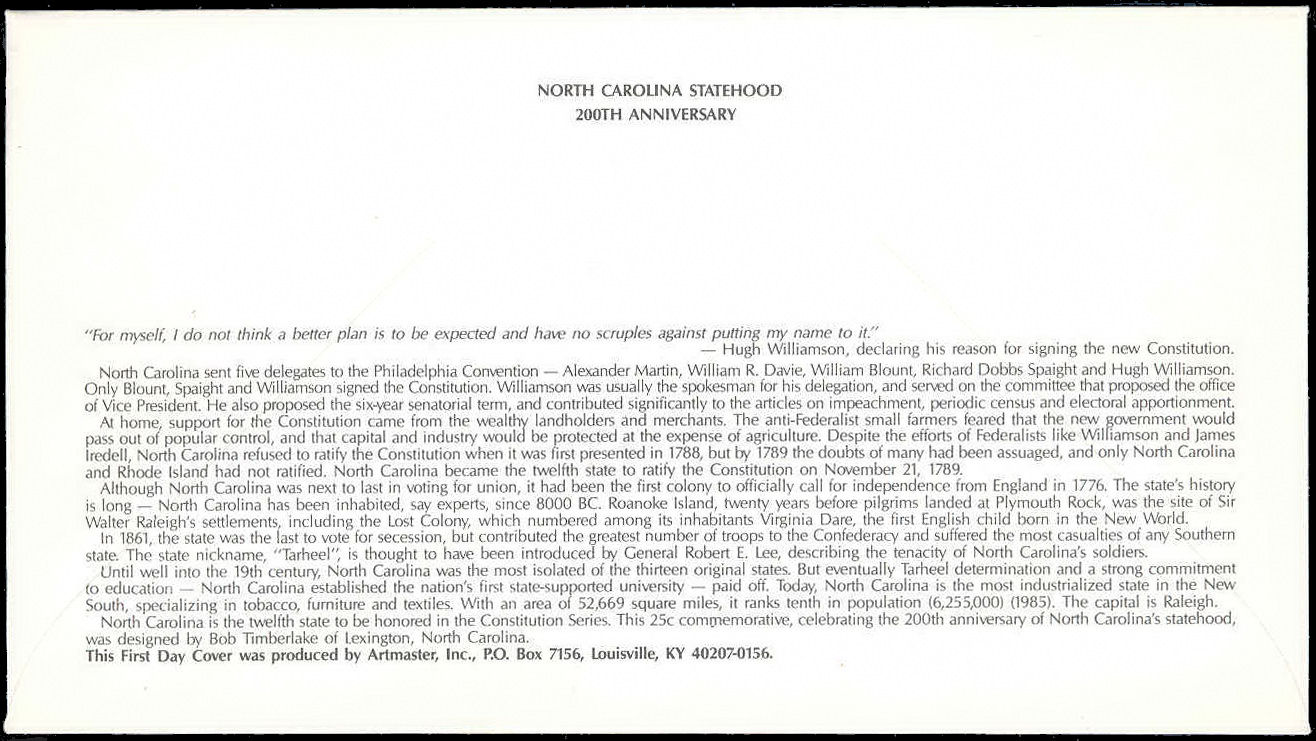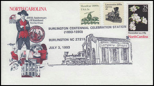 | 98 | Events | 19930703 |  | C#: MTD: PD: QTY: DSC: | 1 Original Burlington NC Centennial Celebration Station; cachet for #2347 FDOI |