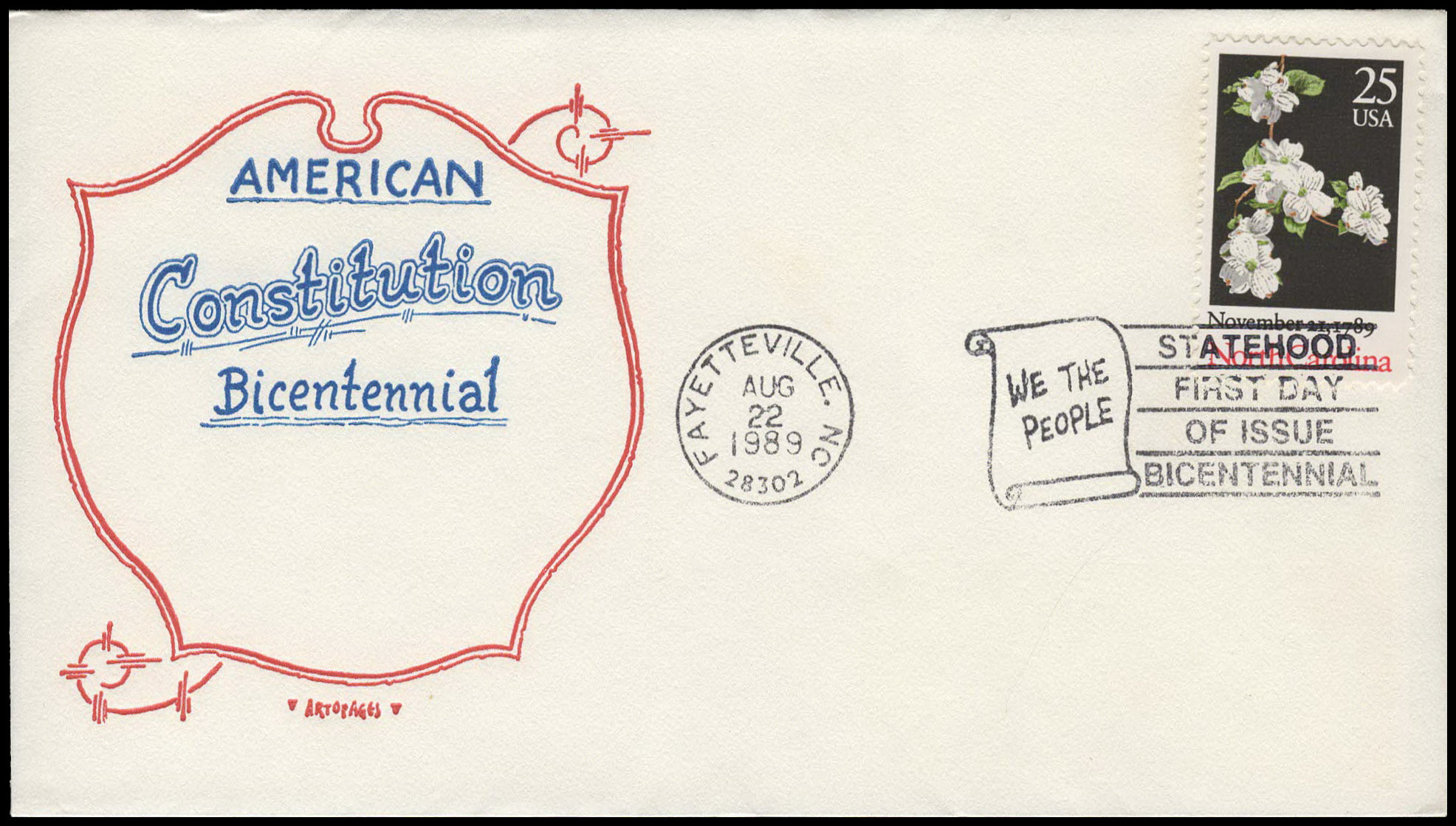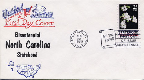 | 35 | 2347 | |  | C#: MTD: PD: QTY: DSC: | 2 Original 2 GP, First Day Cover in frame, UO Carthage, NC; Serviced by John White |