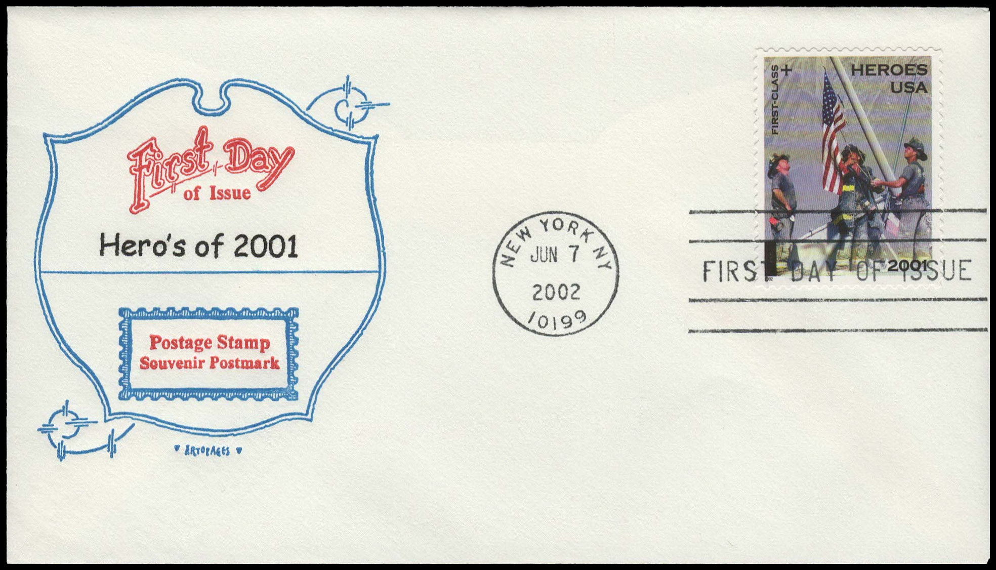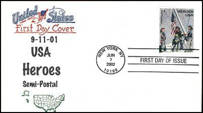 | 73 | B2 | |  | C#: MTD: PD: QTY: DSC: | 4 Original 25 AP-?? Postage Stamp Souvenir Postmark with "Hero's of 2001" imprint |