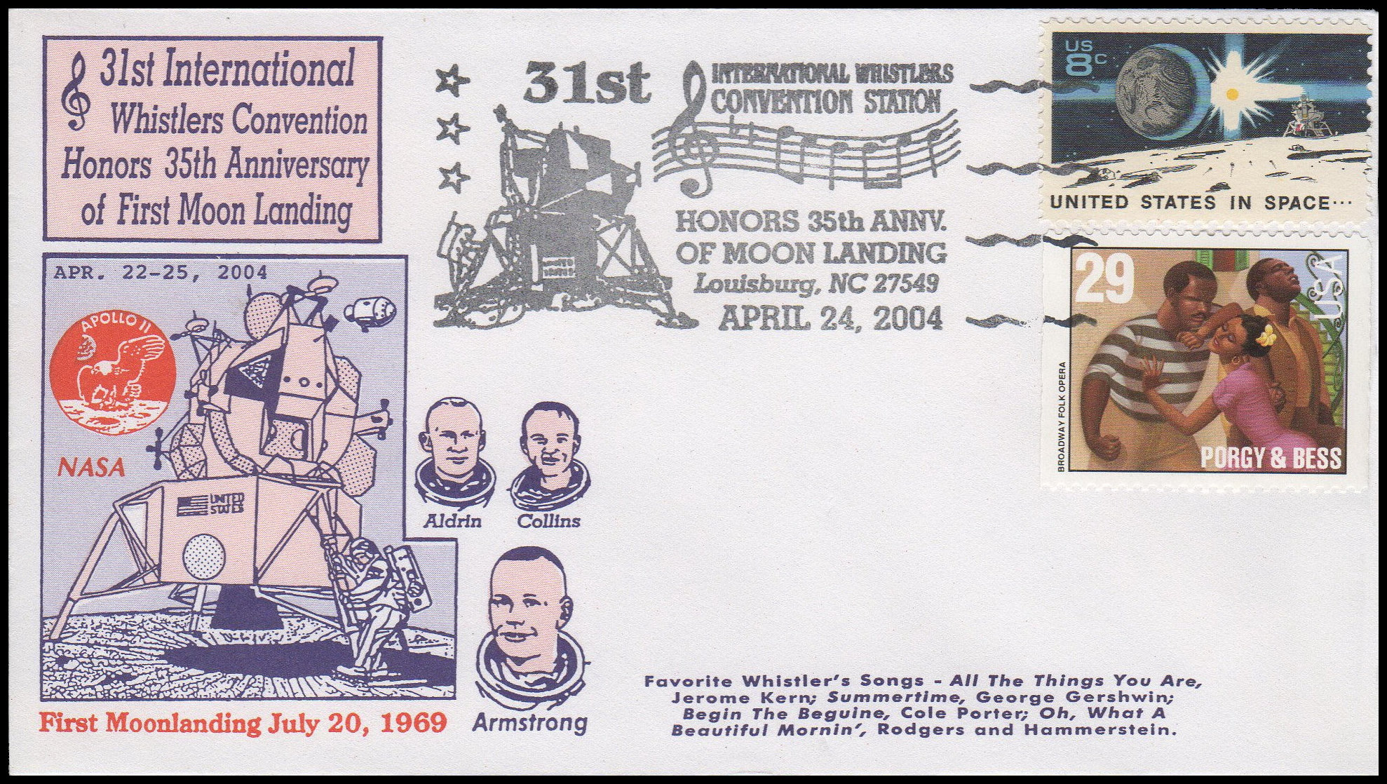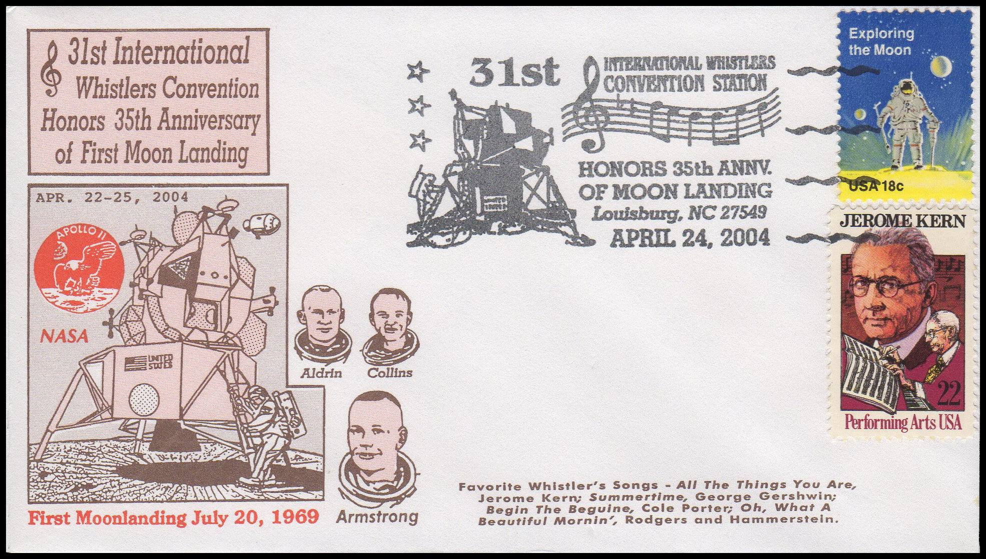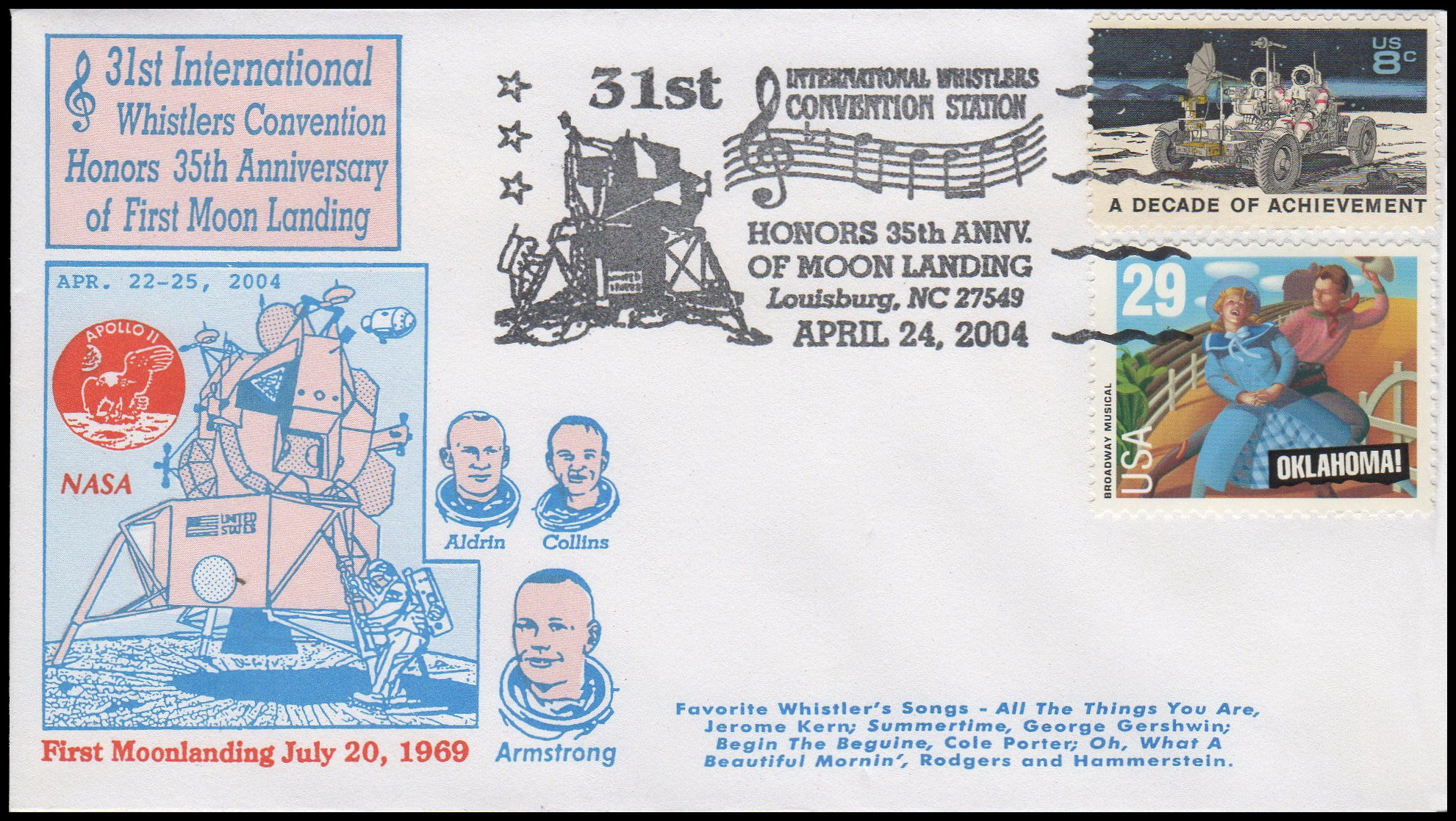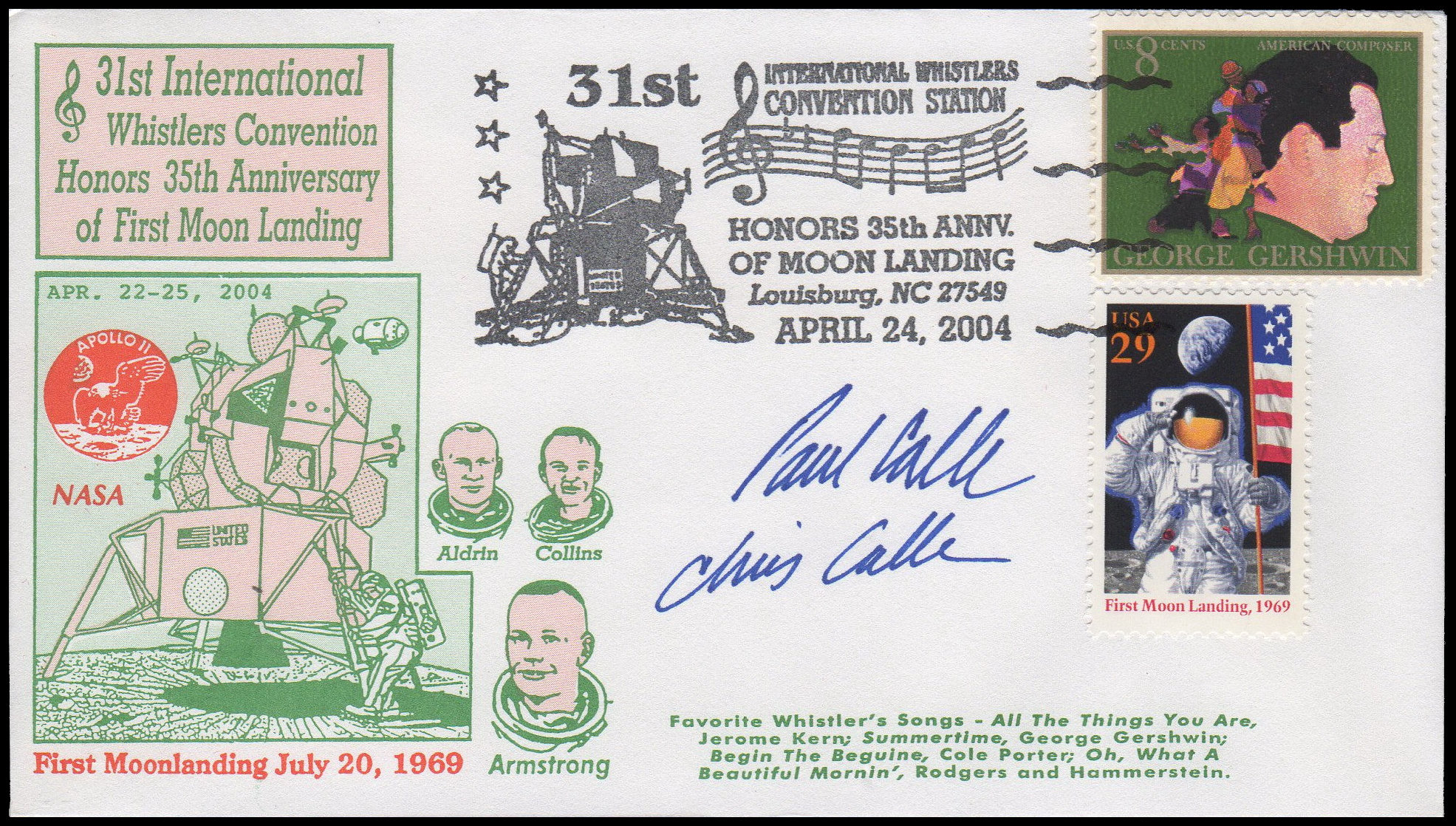 | 22 | Events | 20040424 |  | C#: MTD: PD: QTY: DSC: | 2 Original 35th Anniversary of Moon Landing; Louisburg, NC Whistlers Convention Station; signed by Paul Calle and Chris Calle, designer of Moon Landing stamp |