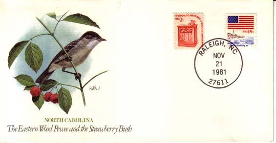| 152 | Events | 19811121 |  | C#: MTD: PD: QTY: DSC: | 1 Original NC Statehood Anniversary; Eastern Wood Pewee and the Strawberry Bush; Raleigh, NC |