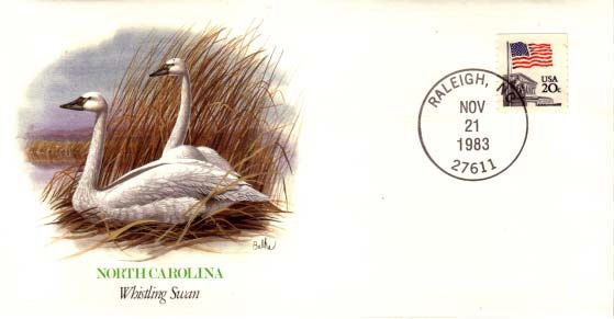 | 155 | Events | 19831121 |  | C#: MTD: PD: QTY: DSC: | 1 Original NC Anniversary of Statehood; Depicting Whistling Swans; Raleigh, NC |