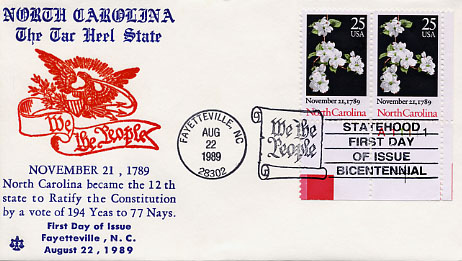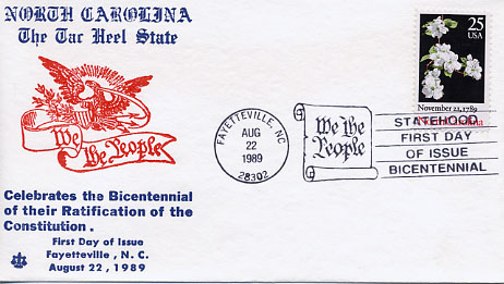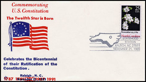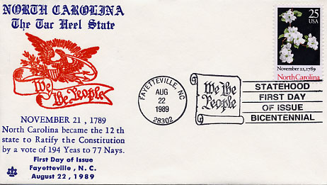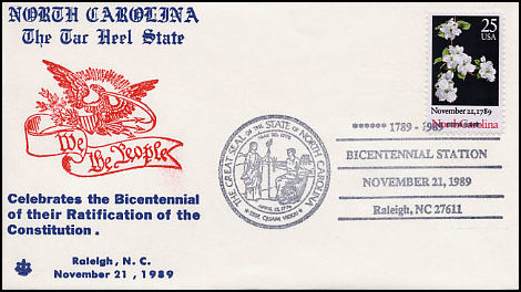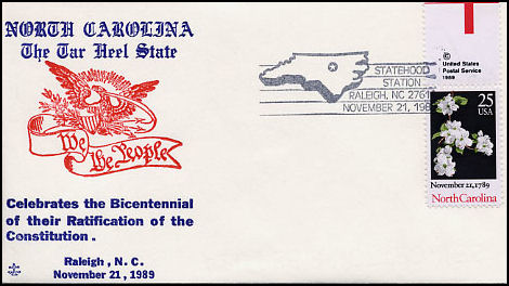 | 66 | Events | 19891121 |  | C#: MTD: PD: QTY: DSC: | 6 Original North Carolina Statehood; Raleigh, NC Statehood Station; Law (Design 6) |