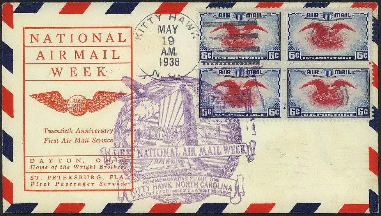 | 16 | Events | 19380519 |  | C#: MTD: PD: QTY: DSC: | 1 Original National Airmail Week; Kitty Hawk, NC; backstamp Dayton, OH 05/20/1938 |
