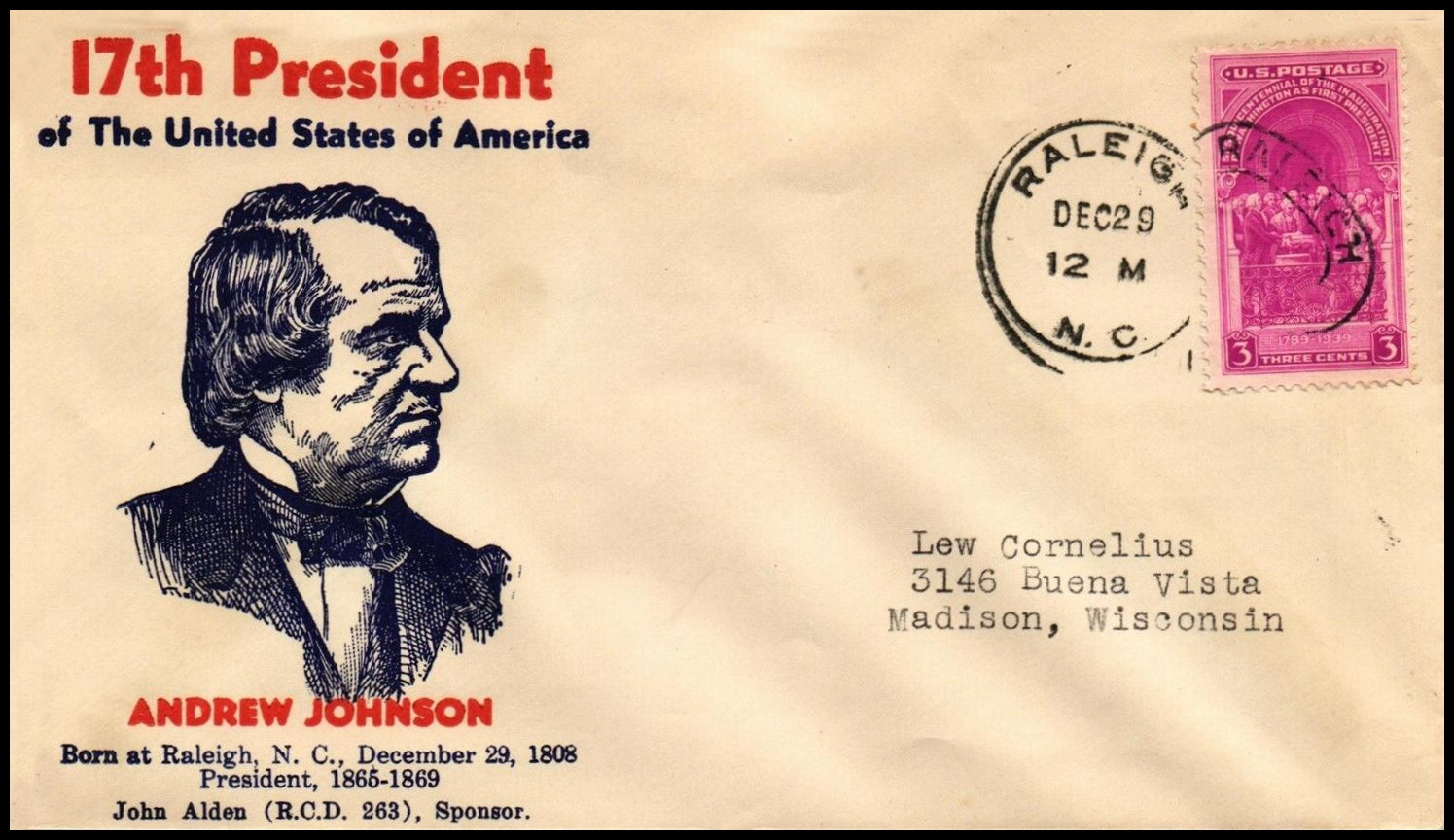 | 4.. | Events | 19401229 |  | C#: MTD: PD: QTY: DSC: | 1 Original President Andrew Johnson; 132th Anniversary of Birth; Raleigh, NC; blue/red |