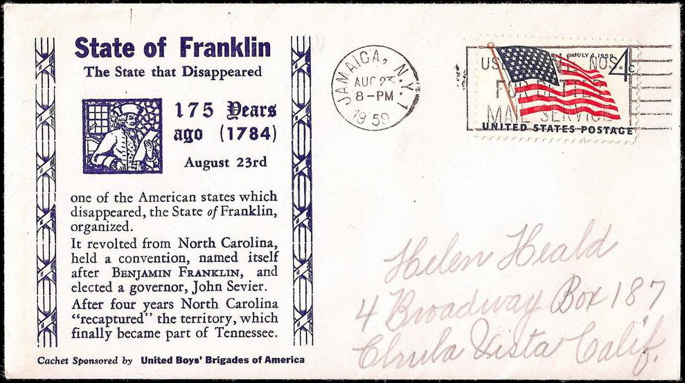 | 1 | Events | 19590823 |  | C#: MTD: PD: QTY: DSC: | 1 Original State of Franklin, The State that Disappeared; Jamaica, NY; blue |