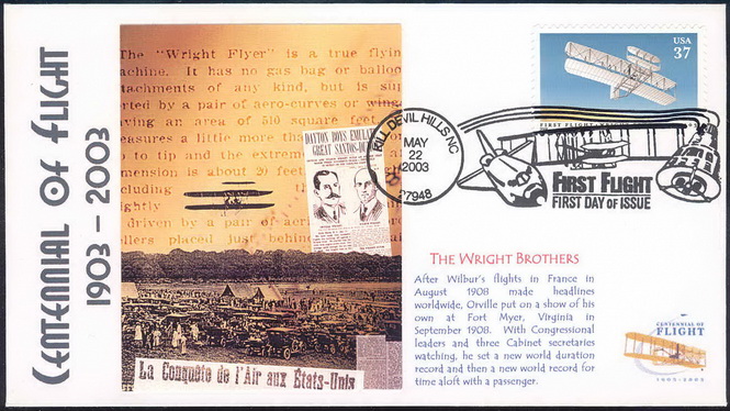 | 21 | 3783 | |  | C#: MTD: PD: QTY: DSC: | 10 prn pas hfd Original 30 {NC}; Montage of images, with the Wright Flyer in the center, the text "First Flight Centennial" above it and "The Event of the Century" below it; printed with added color label |