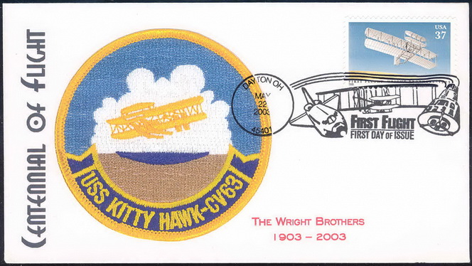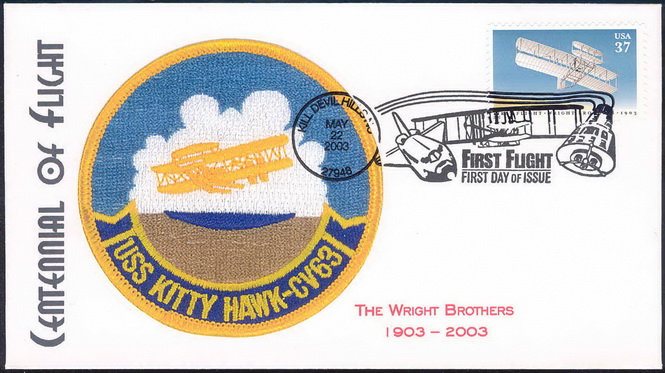 | 28 | 3783 | |  | C#: MTD: PD: QTY: DSC: | 13 prn pas hfd Original 30 {OH}; Circular insignia from the “USS Kitty Hawk - CV63” aircraft carrier, featuring the Wright Flyer first flight; printed with added color label |