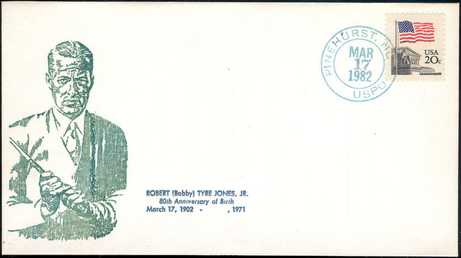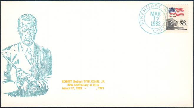 | 22 | Events | 19820317 | ,_02.jpg) | C#: MTD: PD: QTY: DSC: | 2 Original 5 Bobby Jones 80th Birthday; Cachet and text added by JLP; Port Arthur, TX |