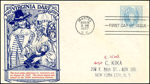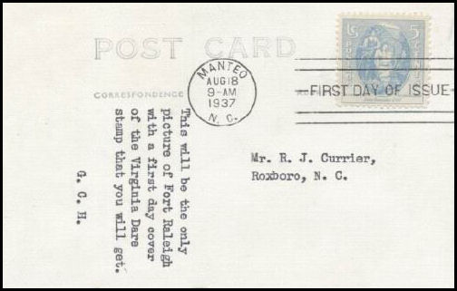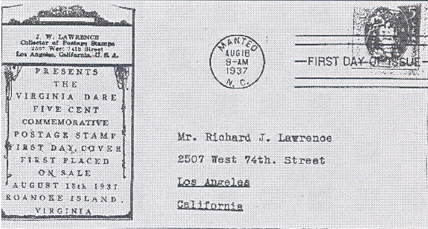 6 | 796 | P037 |  | CM: C#: MTD: QTY: DSC: | Roanoke Colony Memorial Association 1 dark-blue; Size 7 envelope; First |