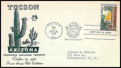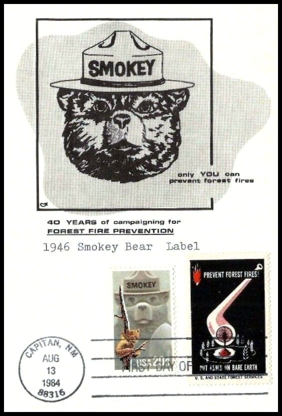 40 | 1122 | NIM |  | CM: C#: MTD: QTY: DSC: | Tucson Stamp Club 2 Maximum Card, Smokey Bear with shovel; First |