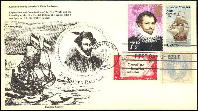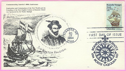 101 | 2093 | |  | CM: C#: MTD: QTY: DSC: | Carolina Cachets 1 black with rsc of 400th Anniversary Logo; Combo England Sir Walter Raleigh Stamp; First |