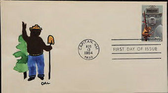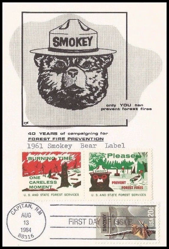 131 | 2096 | |  | CM: C#: MTD: QTY: DSC: | Signature Covers 2 Smokey Bear head in frame; card stock, with Smokey labels added by Mike Kush - 1961; First |