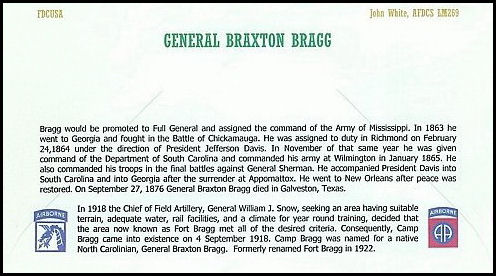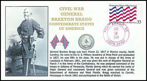 147 | 3331 | |  | CM: C#: MTD: QTY: DSC: | FDCUSA 2 50 General Braxton Bragg; UO Fort Bragg, NC; First |